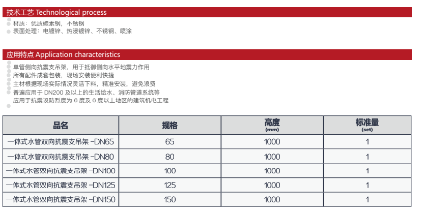 1.一體式水管側向抗震支吊架2、一體式水管雙向抗震支吊架