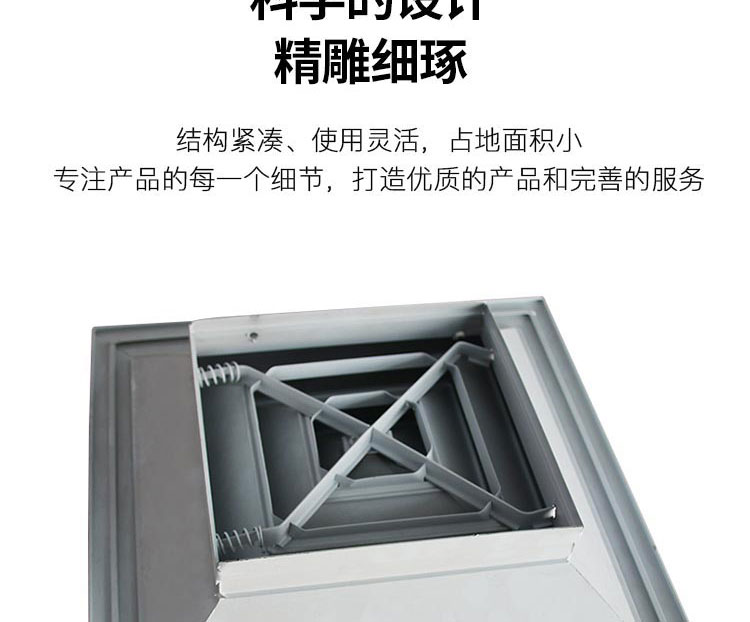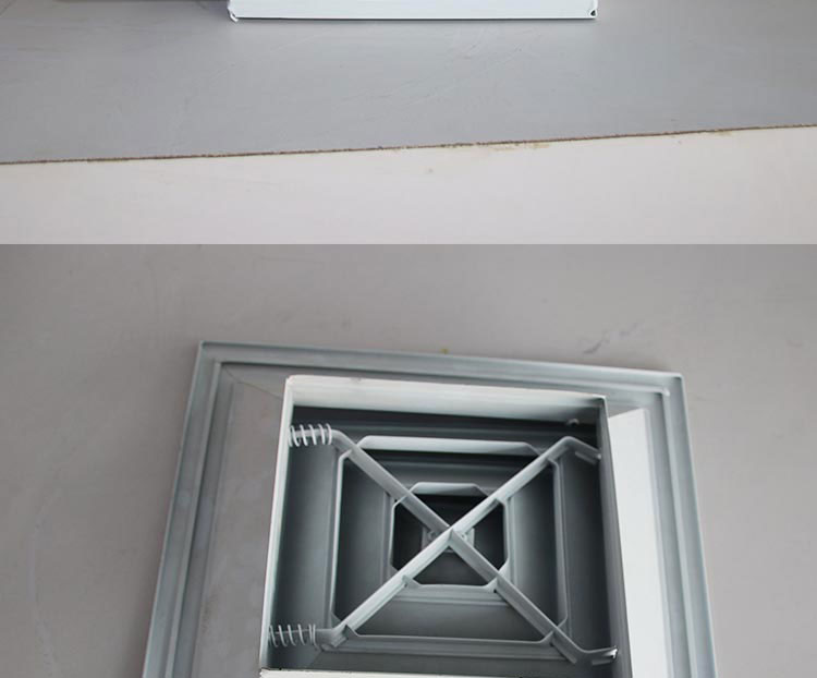 方型散流器使用該類型散流器時要與調(diào)節(jié)閥配合使用,才能在系統(tǒng)中得到理想的氣流分布。此風口的葉片角度為固定式,不能隨意調(diào)節(jié),整個葉片與邊框采用分離結(jié)構(gòu)