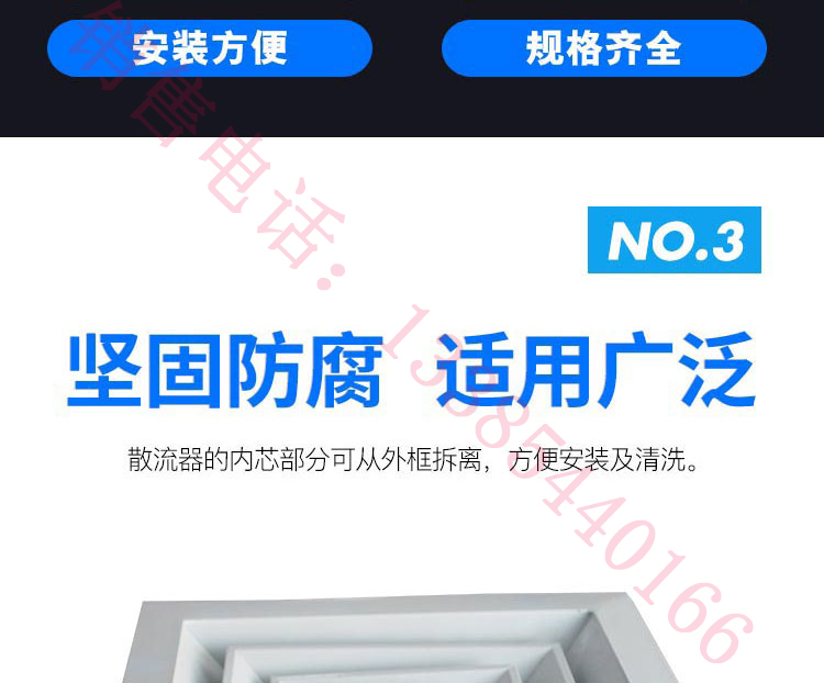 品名:正方形散流器材質(zhì):鋁合金規(guī)格:配合客戶尺寸制作:風口做成加厚型(外框1.0mm,葉片0.8mm);一般制作都是加厚型的,要薄型的可以跟客服聯(lián)系;也可烤兩遍漆,顏色可按客戶要求進行烤制(價格另計,量大從優(yōu))散流器是空調(diào)系統(tǒng)中常用的送風口、具有均勻散流特性及簡潔美觀的外形,可