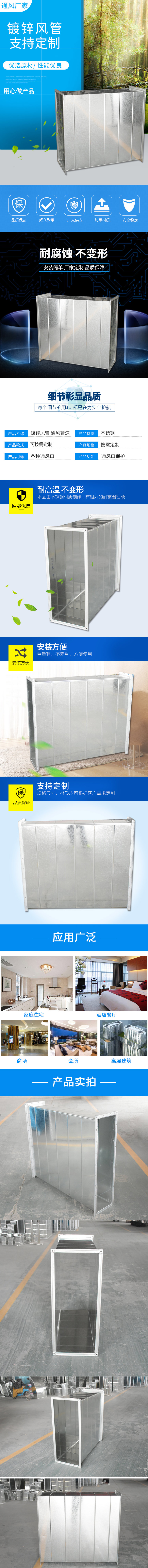 1. 材質(zhì):鍍鋅板2. 管徑:?80-?2000mm3. 厚度:0.5-2.0mm4. 鍍鋅螺旋風(fēng)管長度:常規(guī)4m/節(jié)(可按要求定制)產(chǎn)品優(yōu)點:編輯1. 強度高、阻力小、密封性能好、外形美觀、安裝簡單、使用壽命長。2. 使用的原材料均為本鋼產(chǎn)鍍鋅鋼板。3. 內(nèi)外壁光滑,