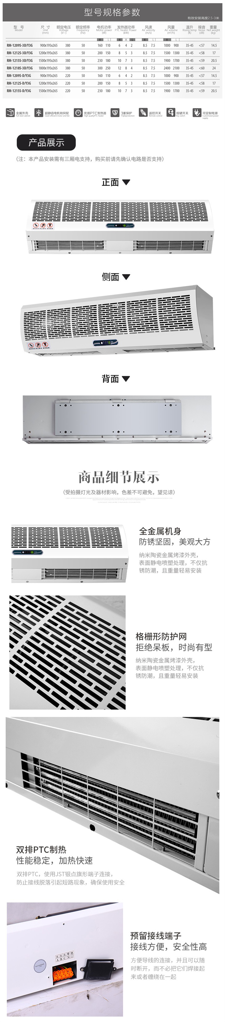 YRSM-L/W熱水型熱空氣幕是以熱水為熱媒的一種封門裝置,較用蒸汽為熱媒節約能源,適于70℃-90℃熱水使用。空氣加熱器采用單迴轉循環,具有傳熱效率高,散熱面積大、空氣射流穩定、噪音小、耗電少、重量輕安裝維護簡便等特點。按其結構形式可分為立式(L)和臥式(W)兩種。