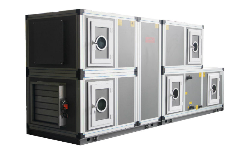 常用功能段組合方式:經濟型組合方式,混合初效段、表冷段、風機送風機段。一般工藝性組合方式,混合初效段、表冷段、中間段、加熱段、加濕段、送風機段。多功能凈化型組合方式:進風初效段、回風機段、板式能量回收段、中間段、表冷擋水段、中間段、蒸汽加熱段、送風機段、均流段、中效過濾段、消聲段、送風機段(臭氧發生斷)