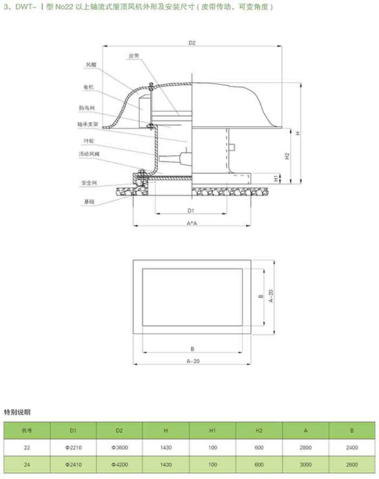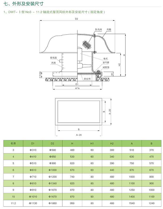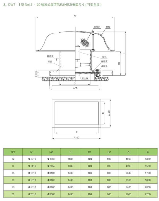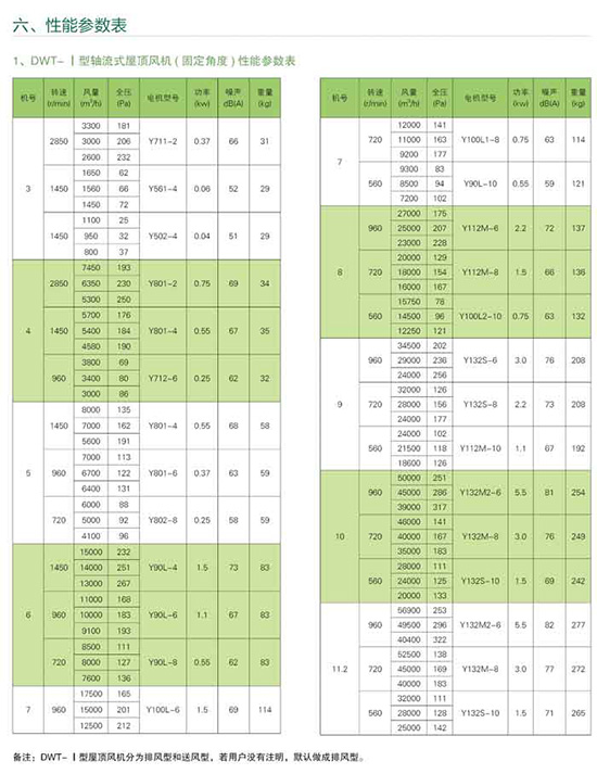 屋頂風(fēng)機(jī)型號(hào)、結(jié)構(gòu)及性能: